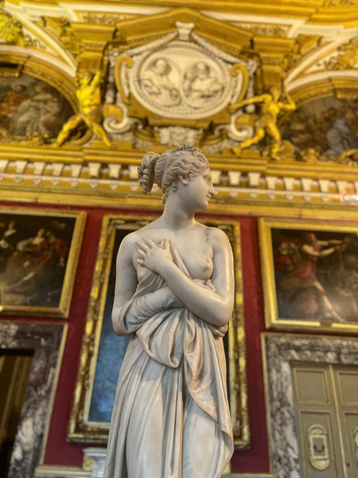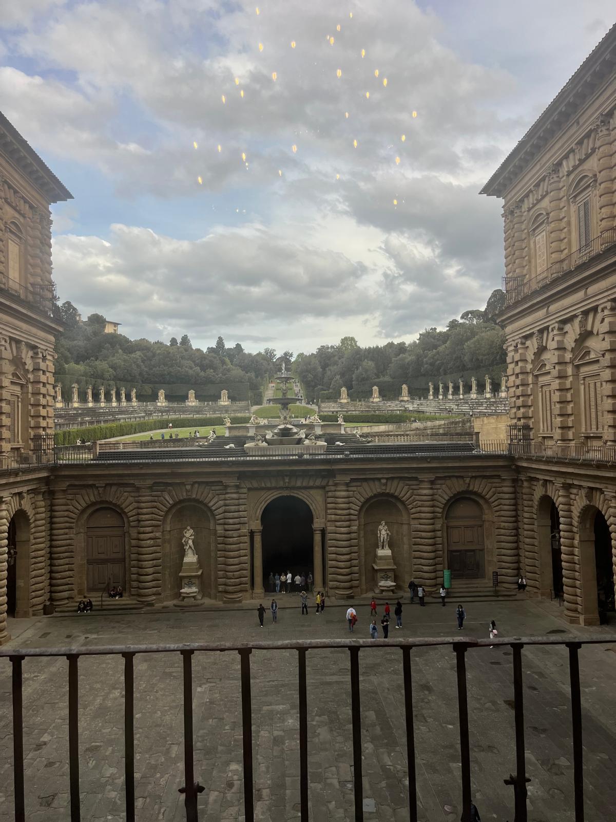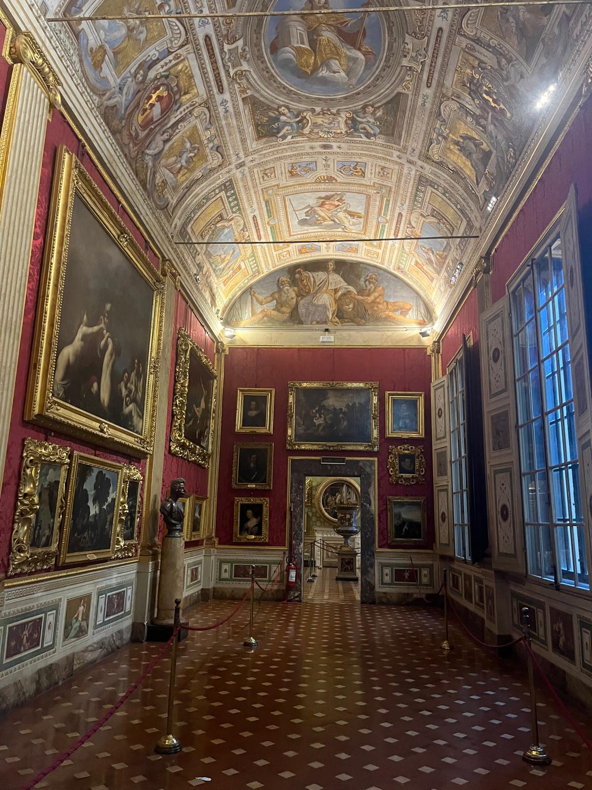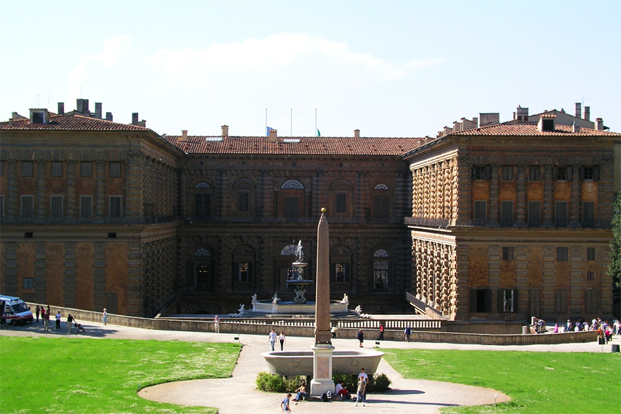 В стенах дворца располагается Палатинская галерея, в которой представлены фрески, прославляющие семью Медичи, собраны картины Рафаэля, Андреа дель Сарто, Филиппо Липпи, Тициана, Рубенса, Боттичелли.