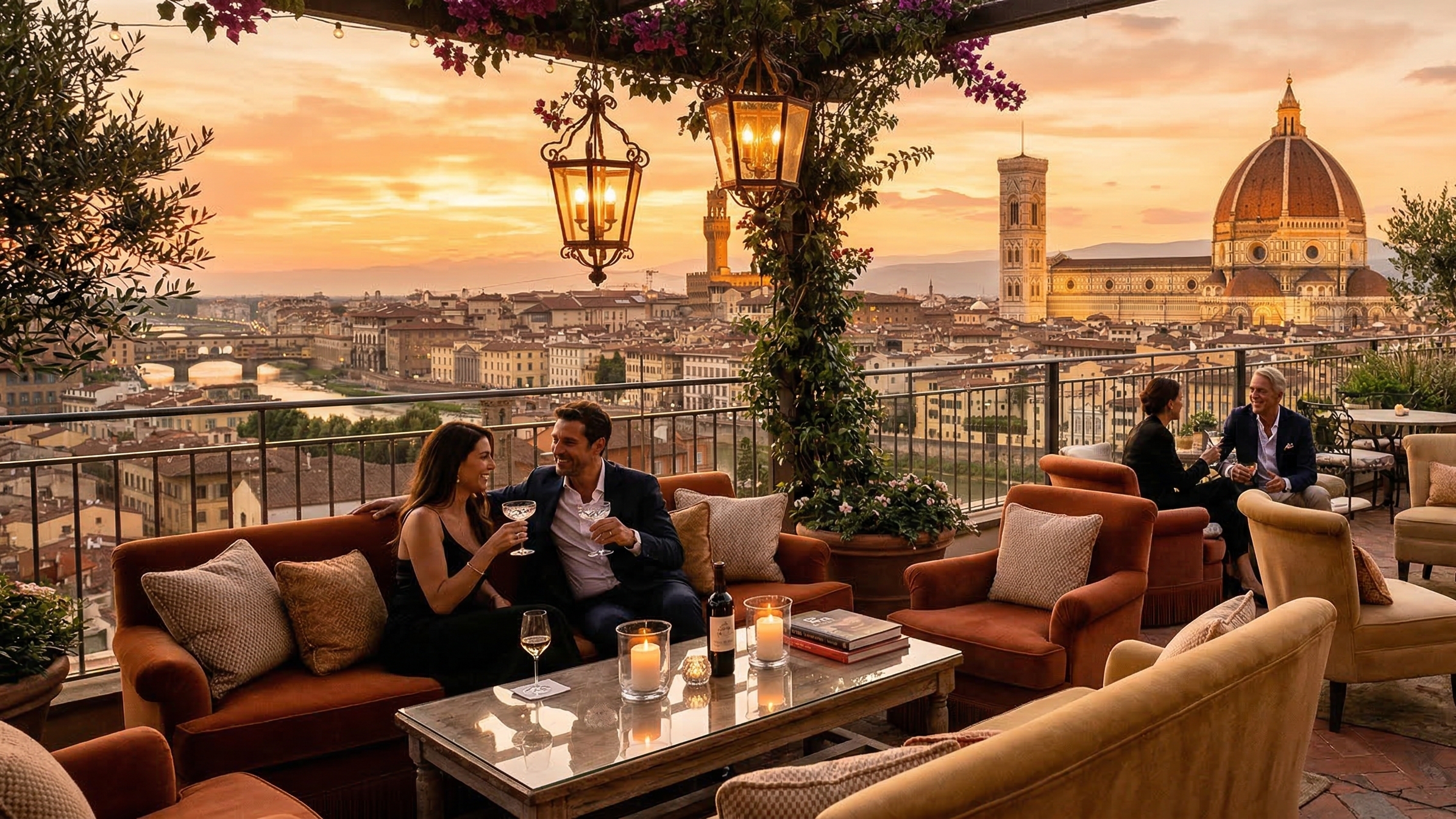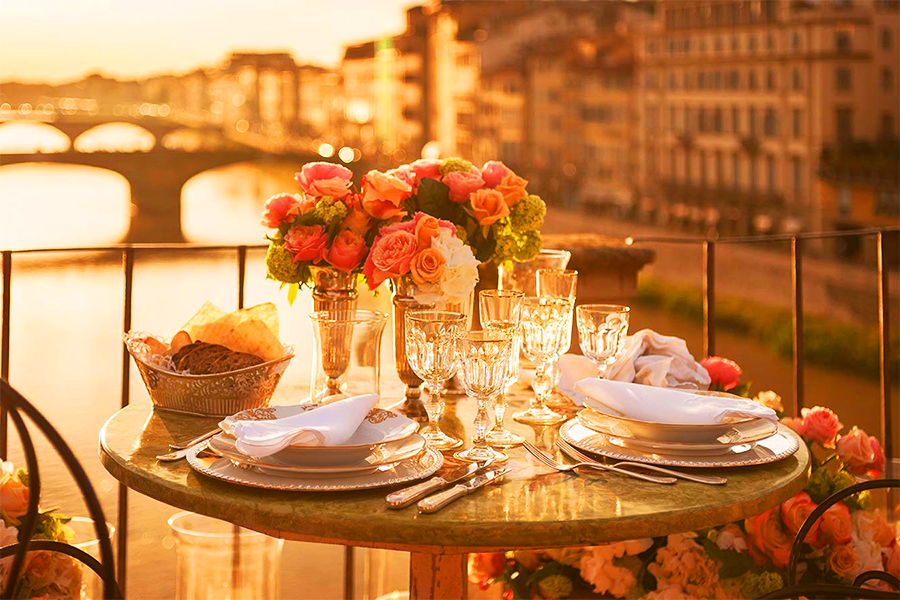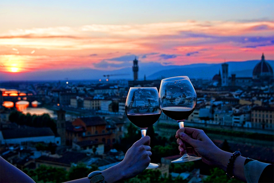 Экскурсия заканчивается аперитивом при свечах в ресторанчике с потрясающим видом на галерею Уффици, реку Арно и живописные холмы Флоренции.