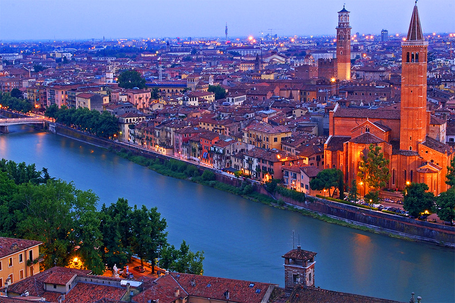 Верона - это поистине уникальный город. На протяжении многих веков Верона была Северными воротами Италии, сохранив в себе свидетельства всех цивилизаций живших в этих местах. Это и древнеримский город, и резиденция королей остготов и лангобардов, и средневековый городок, известный нам большей частью благодаря Шекспиру. Все это в совокупности образует огромный пласт дневней и средневековой культуры, а также 4-х вековой период правления Венеции...
